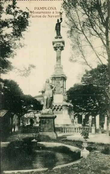 Ak Pamplona Navarra, Denkmal für die Fueros von Navarra