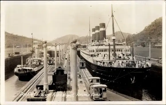Ak Panama Canal, Double Lockage, Pedro Miguel, Schiffe
