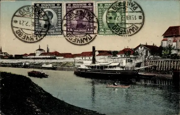 Ak Pancevo Pantschowa Serbien, Flusspartie, Stadtansicht