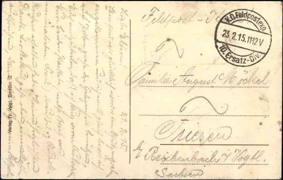 Zustand, siehe Scan, gelaufen, 1915 - ca 14 cm X 9 cm