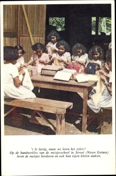 Ak Papua Neuguinea, Nähende Mädchen in der Schule
