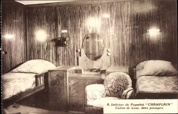 Ak Paquebot Champlain, Cabine de Luxe, deux passagers, CGT, French Line