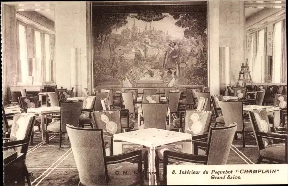 Ak Paquebot Champlain, Grand Salon, Innenansicht, CGT, French Line