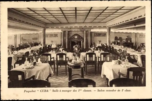 Ak Paquebot Cuba, CGT French Line, Salle à manger, 1res Classes