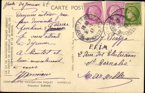 Zustand, siehe Scan, gelaufen, 1947 - ca 9 cm X 14 cm