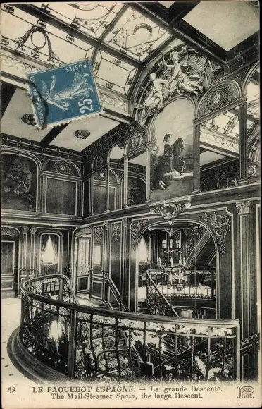 Ak Paquebot Espagne, CGT, French Line, La grande descente