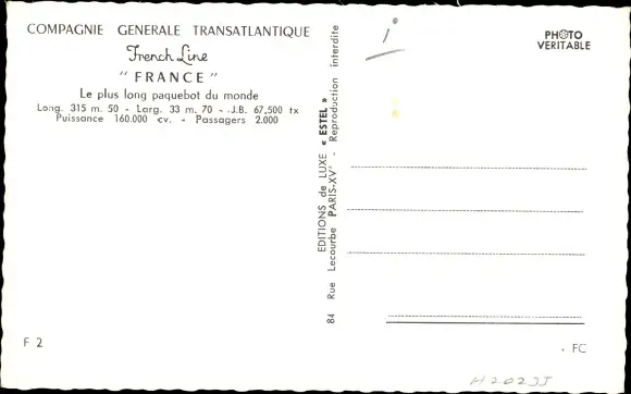Ak Paquebot France, Compagnie Generale Transatlantique CGT, French Line