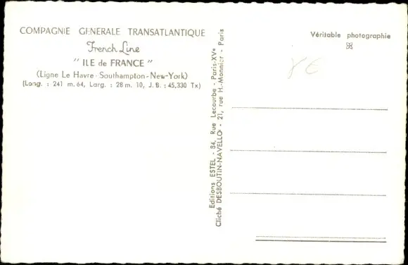 Ak Paquebot Ile de France, CGT, French Line