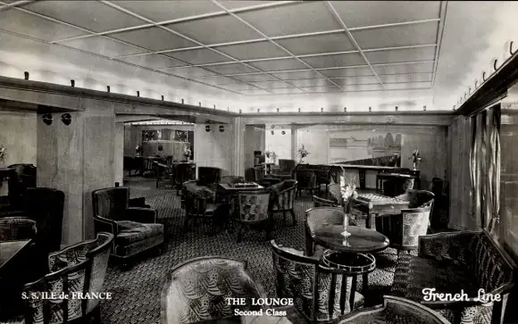 Ak Paquebot Ile de France, CGT, French Line, Lounge, Second Class
