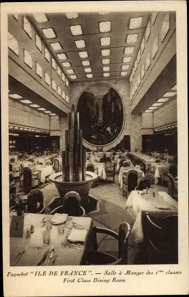 Ak Paquebot Ile de France, CGT, Salle a Manger des 1res classes