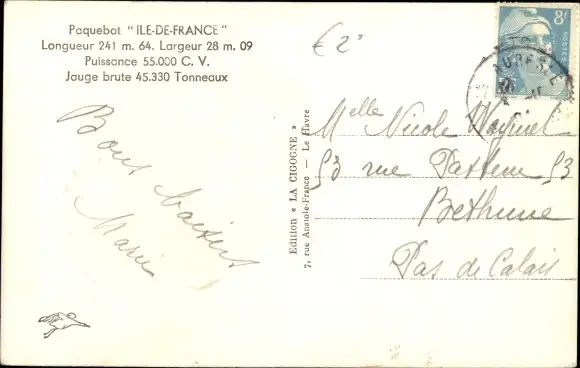 Ak Paquebot Ile de France, Dampfschiff auf See, CGT, French Line