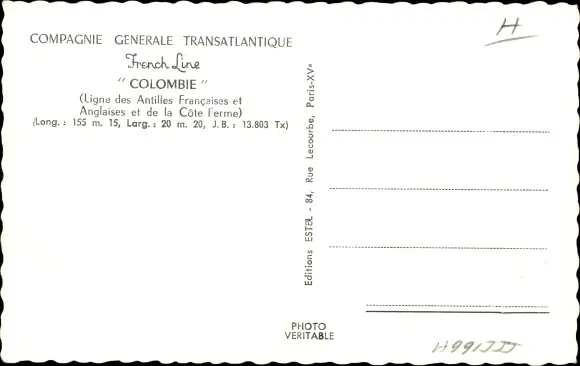 Ak Paquebot Kolumbien, CGT, französische Linie