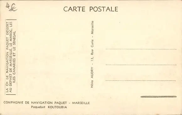 Ak Paquebot Koutoubia, Dampfschiff, Compagnie de Navigation Paquet, CNP