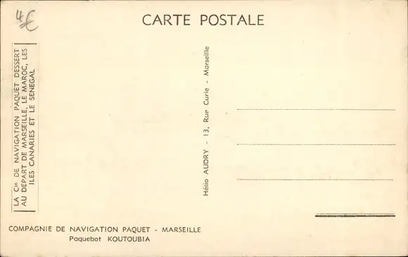 Ak Paquebot Koutoubia, Dampfschiff, Compagnie de Navigation Paquet, CNP