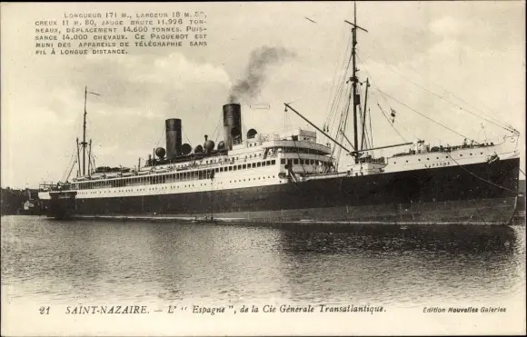 Ak Paquebot L'Espagne, CGT French Line, Passagierdampfer