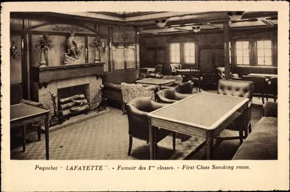Ak Paquebot Lafayette, CGT French Line, Fumoir des 1res classes