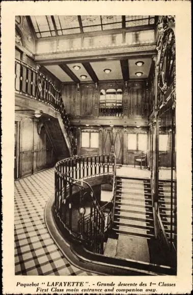 Ak Paquebot Lafayette, CGT French Line, Grande descente des 1res Classes