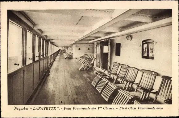 Ak Paquebot Lafayette, CGT French Line, Pont Promenade des 1res Classes
