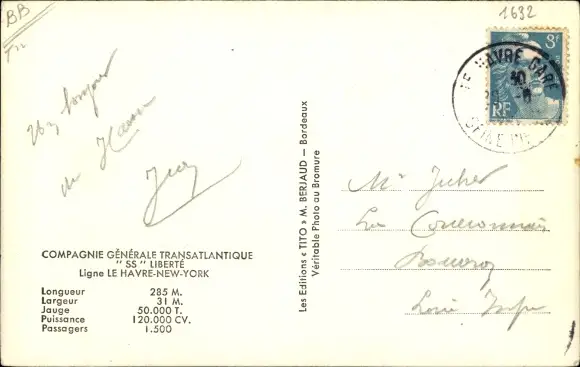 Ak Paquebot Liberté, CGT, French Line