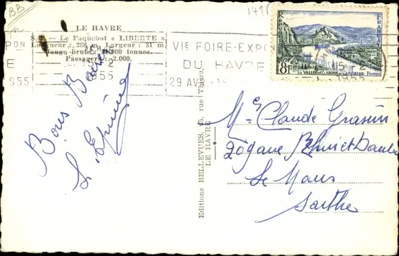 Zustand, siehe Scan, gelaufen, 1955 - ca 14 cm X 9 cm