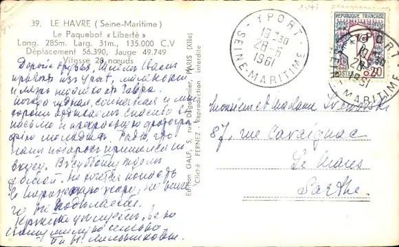 Ak Paquebot Liberté, CGT French Line, Ansicht Steuerbord