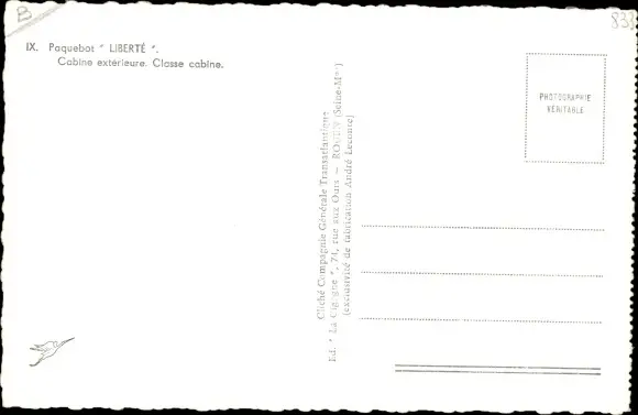 Ak Paquebot Liberté, CGT French Line, Cabine exterieure, classe cabine