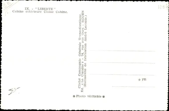 Ak Paquebot Liberté, CGT French Line, Cabine exterieure, classe cabine