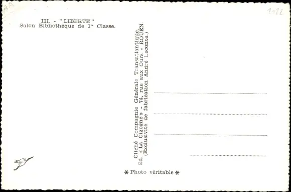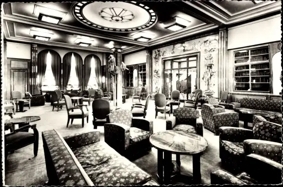 Ak Paquebot Liberté, CGT French Line, Salon bibliotheque de 1re classe
