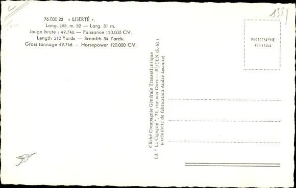 Ak Paquebot Liberté, CGT French Line, Transatlantic