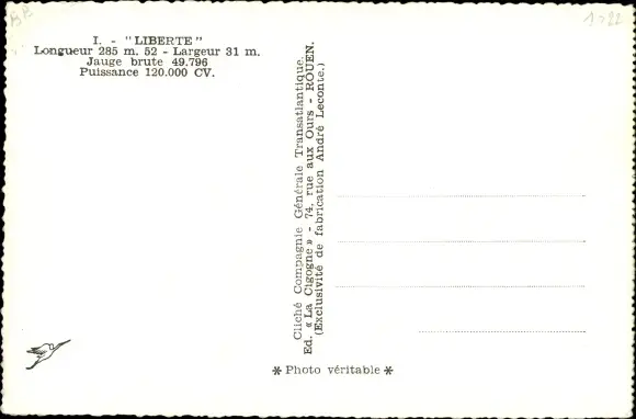 Ak Paquebot Liberté, CGT French Line, Transatlantique
