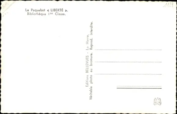 Ak Paquebot Liberté, CGT French Line, Transatlantique, Bibliothèque 1re Classe