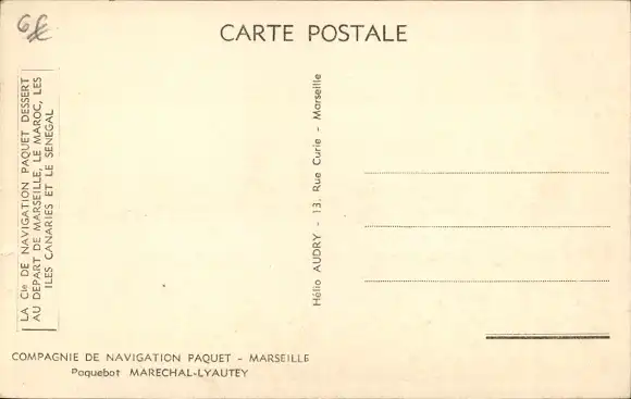 Ak Paquebot Maréchal Lyautey, Compagnie de Navigation Paquet, CNP