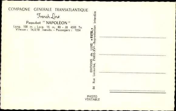 Ak Paquebot Napoléon, CGT French Line, Ansicht Steuerbord