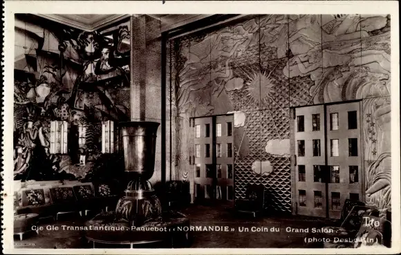 Ak Paquebot Normandie, CGT French Line, Coin du Grand Salon
