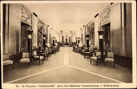 Ak Paquebot Normandie, CGT French Line, Galerie salon