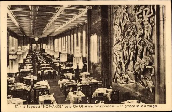 Ak Paquebot Normandie, CGT French Line, Grande salle à manger