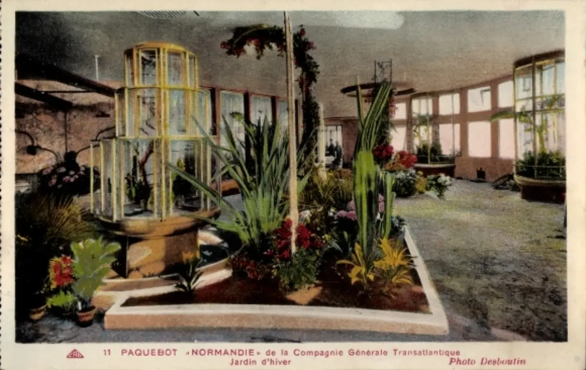 Ak Paquebot Normandie, CGT, Jardin d'hiver, Wintergarten