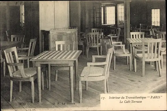 Ak Paquebot Paris, CGT French Line, Café Terrasse