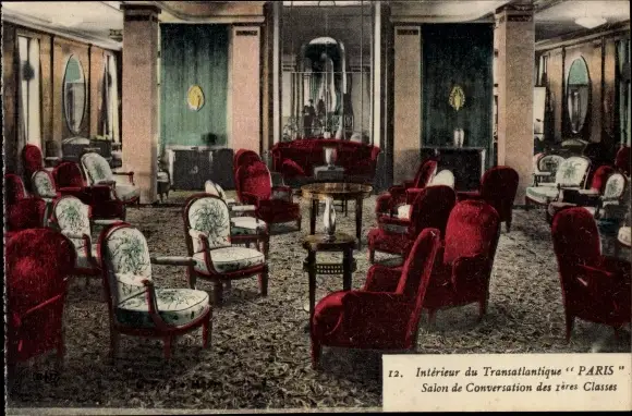 Ak Paquebot Paris, CGT French Line, Interieur, Salon de Conversation des 1eres Classes