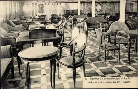 Ak Paquebot Paris, CGT French Line, Salon de Conversation des 2emes Classes