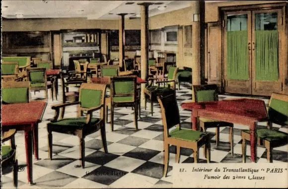Ak Paquebot Paris, CGT, Interieur, Fumoir des 2emes Classes