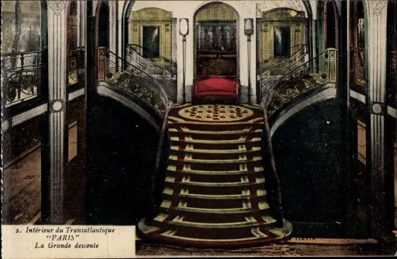 Ak Paquebot Paris, CGT, Interieur, La Grande descente