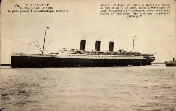 Ak Paquebot Paris, Dampfschiff, CGT, French Line