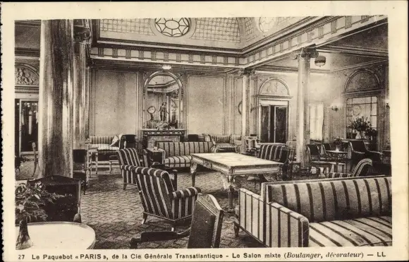Ak Paquebot Paris, Dampfschiff, CGT, French Line, Salon mixte