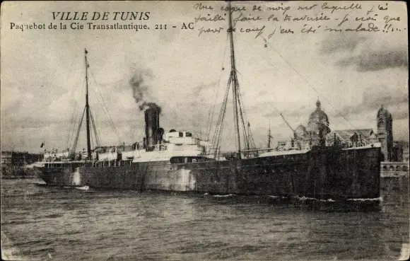 Ak Paquebot Ville de Tunis, CGT French Line