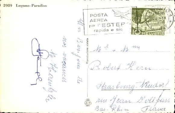 Zustand, siehe Scan, gelaufen, 1954 - ca 14 cm X 9 cm