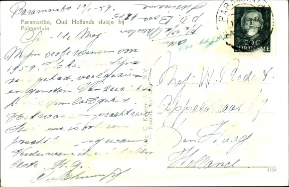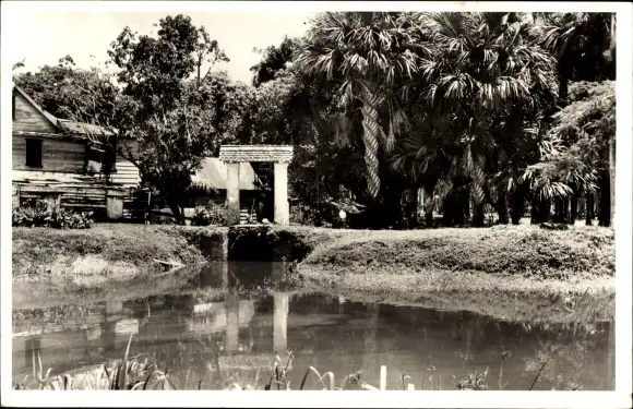 Ak Paramaribo-Suriname, altholländische Schleuse in der Nähe von Palmentuin