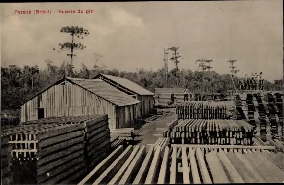 Ak Paraná Brasilien, Kiefernsägewerk