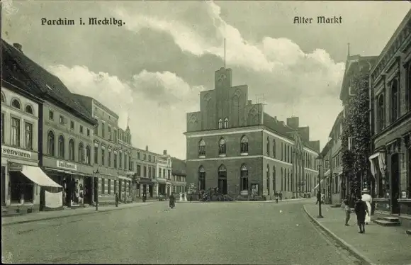 Ak Parchim in Mecklenburg, Alter Markt, Geschäfte