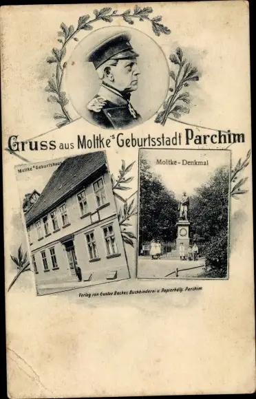 Ak Parchim in Mecklenburg, Moltke Denkmal, Geburtshaus, Portrait